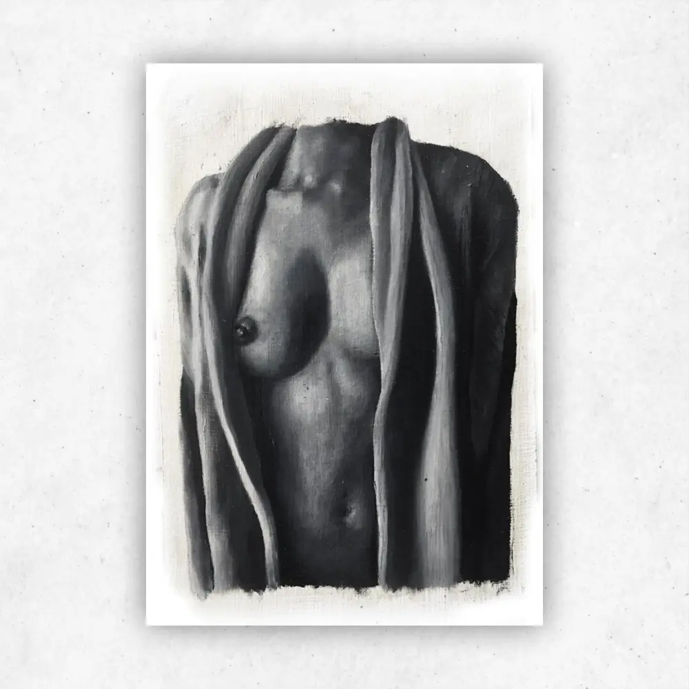 Artist Julie Tugwell painted the beautiful female form with delicately layered oil paint on board.