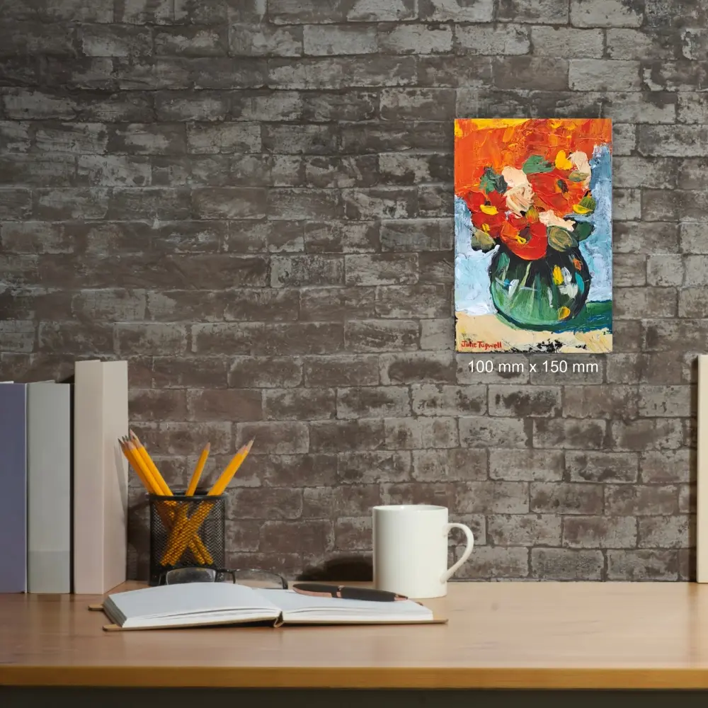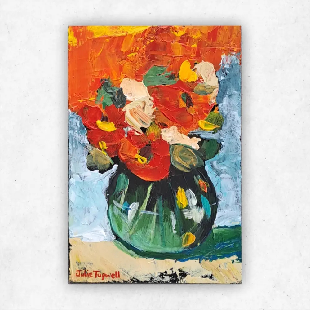 These are bold and colourfully textured acrylic flower paintings.