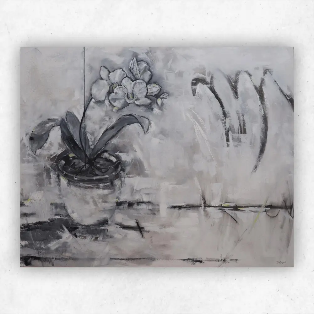 South African Artist Julie Tugwell has painted a modern Orchid painting using palette knives.